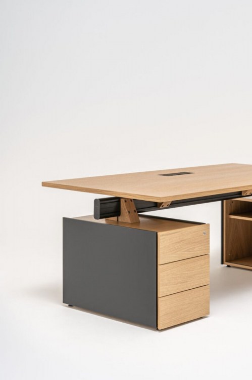 Jako kolekcja mebli gabinetowych, Viga składa się z szerokiej oferty biurek, które dobrać do potrzeb użytkowników. Dostępne są w różnych wymiarach i konfiguracjach szafek lub kontenerów. Zdolności personalizacji biurek zwiększa także opcja regulacji wysokości blatu, umożliwiająca ustawienie go zgodnie z indywidualnym trybem pracy.